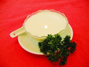 配料(供四人食用):一根黄瓜,1/2升豆浆,3根薄荷
