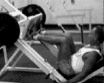 起始姿势 仰卧在“腿举架”的底板上,蜷缩双腿让整个脚底顶住加重板的底面。 动作过程 两腿用力向上蹬板,到两腿完全伸直,同时尽力收缩股四头肌。静止一秒钟, 屈膝,让加重板慢慢下降到先卡定的高度。重复再做。 呼吸方法 用力蹬板时吸气,回降时呼气。 注意要点 仰卧时,臀部正对加重板的中心下方。蹬板时,整个脚底平贴住板底。