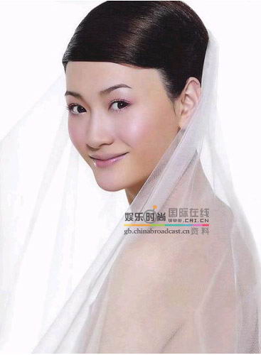 清新的李小冉在轻纱的衬托下气质出众