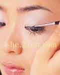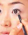 3最后再用黑色的眼线笔描绘下眼线,不过在此建议只需描2/3的长度即可,否则会有太艳丽的效果。