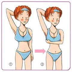 2、另一只手由内向外围绕胸部做按摩,觉得肌肤微热后,换手再做另一侧。