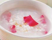 2.鸡汤加热煮沸,放入白米续煮至滚时稍微搅拌,改中小火熬煮30分钟,加入玫瑰花瓣续煮3分钟即可。