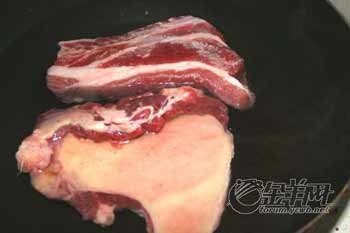 先把肉在开水中稍微煮一下,把浮血和脏东西煮出来