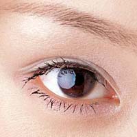 淡紫色的眼影略泛光泽,搭配粉红色下眼影毫不抢眼。眼角使用珠光白色提亮,这是不可或缺的时尚亮点。