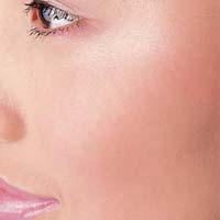 选择一个亲近于肤色的粉色腮红在两颊横向地扫一扫。甜美感的腮红面积可以大一些,但要注意整体刷抹与肤色自然过渡。
