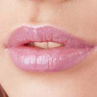 先在整个唇部涂上粉色的滋润唇膏,然后涂上淡紫色的唇彩,这样能使唇部色彩显得丰富而自然。