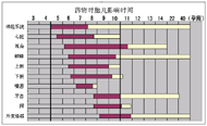 受精后3~8周(即停经5~10周),是胚胎器官分化发育的关键阶段,此时细胞开始定向发育,受到有害药物的作用后即可产生形态上的异常而致畸,因此这一段时间是致畸高度敏感期,但具体到不同的系统、器官,最敏感的时间也还有差别。(见图表)