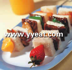 (4)依个人喜好,将土司片与各式食材穿插串起即可。休 闲 居编 辑