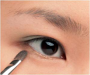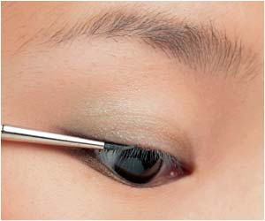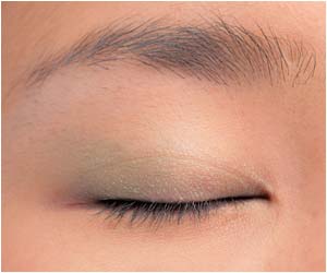 1、从内眼角开始整个上眼睑均匀地涂抹一层绿色眼影。