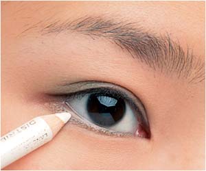 4、下眼睑用白色眼线笔细细地勾勒内侧眼线。