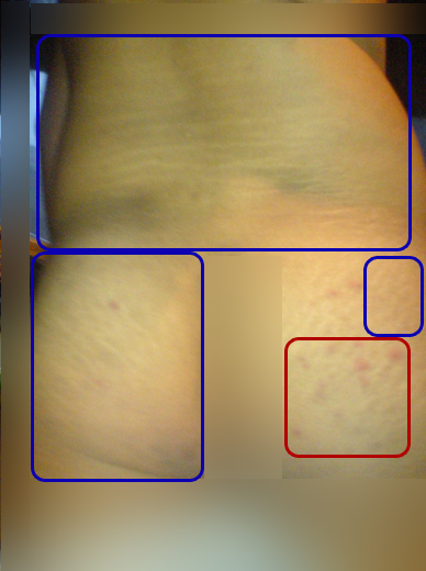 问题一(红框):我屁股上怎么长了那么多红点?摸着有点疼,请问那是什么?因为我们这里比较热,几乎每天内裤都会被汗打湿,会不会是因为这个原因?