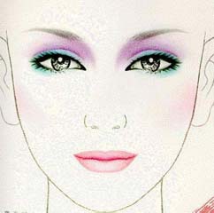 色彩搭配:蓝色配橙黄色、银白色,热烈而生动;绿色配鹅黄色、樱桃红,妆色显得热烈而妩媚;紫褐色配玫瑰红、橙黄色、蓝白色,妆色显得热烈而高雅;蓝色配玫瑰红色、鹅黄色、银色,妆色艳丽而高贵。