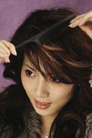 8.用梳子轻轻地倒梳一下,让头发更蓬松自然。
