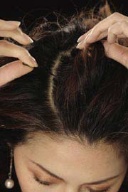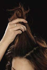 1.把顶部的头发抓起,用梳子分成等量的几份。