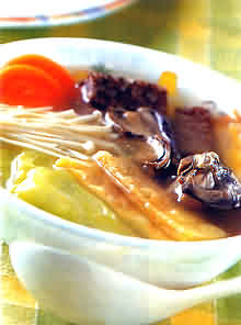 2、锅内加适量水、盐、味精、鸡精,下入乌鸡块、茯苓、当归,小火煲3小时左右即成。