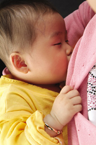 宝宝吃奶时若被逗笑,吸入的奶汁可能误入气管,轻者呛奶,重者可诱发吸入性肺炎。