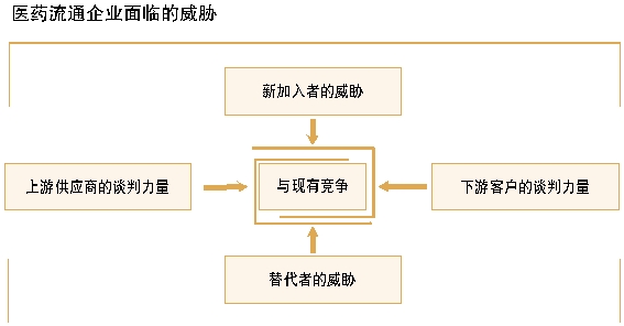 我国医药行业的盈利率逐年下降,这与高额的物流费用有着千丝万缕的联系。从这个角度考虑,有更多的专业物流公司介入医药流通领域是个利好消息,因为这样可以降低整个医药行业的物流费用,从而达到共赢的目标。但是竞争的加剧对于医药流通企业来说,恐怕不是一个好消息。对于处在供应链中部的流通企业来说,本身已经承受了上游制药企业和下游客户的议价压力,再加上行业竞争者的威胁,其两难处境可想而知(见附图)。
